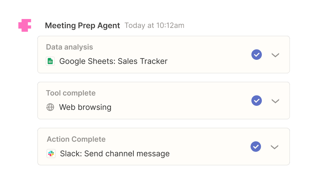 Now, your AI agent can perform real tasks like searching business data, sending messages, collating reports, scheduling events, and updating records, transforming it from a conversational tool to a functional extension of your apps.